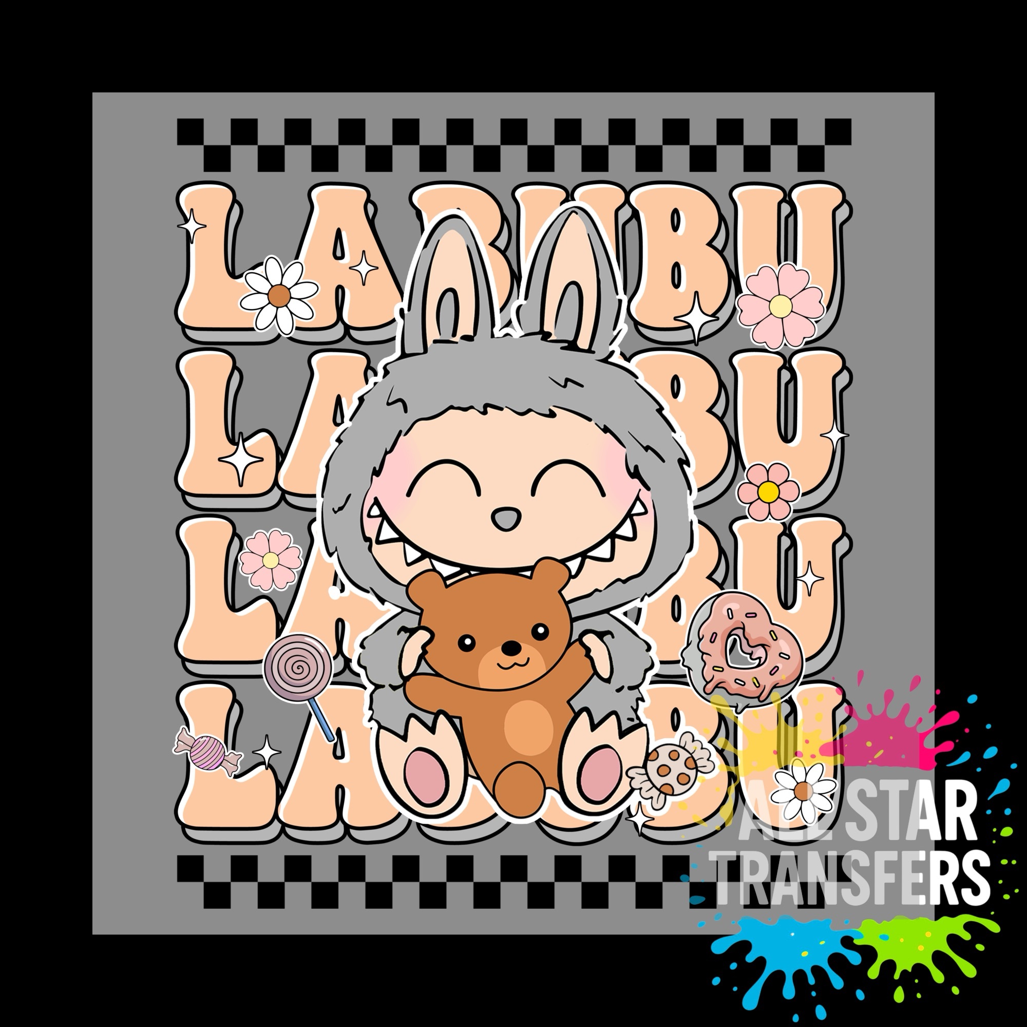 Cute Monster Check – Orange/Grey